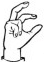 На ћирилици написано СУЗАНА ДУЈИН састоји се из 11 слова [?]. Исписано ћириличном једноручном азбуком за глувонеме: